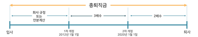 3배수 적용 기간인 2012년 1월 1일부터 2019년 12월 31일 사이에만 근무한 경우는 큰 문제 없이 법령에서 제시하고 있는 계산법에 맞게 계산하면 됩니다. 이때 계산된 금액은 전액 퇴직소득세로 과세 가능합니다.