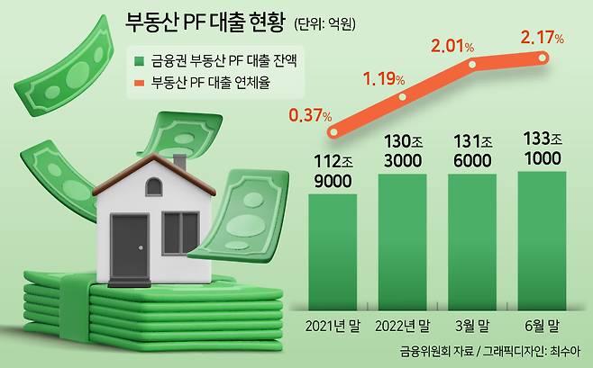 ▶“강남권도 위기…여전히 공급 난항”=4일 업계에 따르면 서울 강남구 청담동 프리마호텔을 최고 49층의 고급 주상복합으로 개발하는 ‘르피에드 청담’ 사업은 브릿지론 만기 연장이 되지 않으며 사업 좌초 위기에 처했다. 이 사업을 위해 금융기관 26곳에서 총 4640억원 규모 브릿지론을 받았는데, 선순위 채권자인 새마을금고가 만기 연장에 반대했기 때문이다. 이 사업은 땅값이 천정부지로 치솟던 호황기에 용지를 매입, 시장이 꺾이자 대출 부담이 부메랑이 되며 위기에 봉착한 것으로 풀이된다. 한 업계 관계자는 “(시행사는) 호텔 부지는 평당 2억원대, 바로 옆 긴자 부지는 평당 3억원대까지 가격이 올랐을 때 땅을 샀다”며 “그러나 시장이 안 좋아지며 이자는 2배, 3배 되며 독이 됐을 것”이라고 분석했다. PF 시장 상황이 악화하며 금융권의 부동산 PF 대출 연체율은 3월 말 2.01%에서 6월 말 2.17%로 소폭 상승했다.