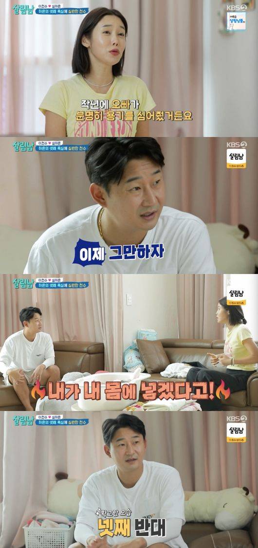 4일 방송된 KBS2 예능 '살림하는 남자들 시즌2'(이하 '살림남2')에서는 이천수, 심하은 부부가 넷째 계획을 두고 갈등을 빚는 모습이 그려졌다.