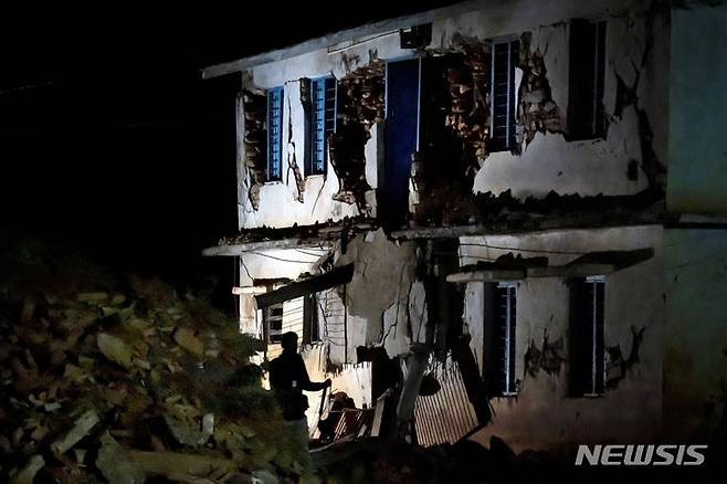 [자자르코트=AP/뉴시스] 4일(현지시각) 네팔 수도 카트만두에서 400㎞ 떨어진 산간 마을 자자르코트에서 발생한 지진으로 학교 건물이 파손돼 있다. 현지 당국은 이곳에서 발생한 규모 5.6의 강진으로 지금까지 최소 150명이 숨졌으며 사망자 숫자는 더 늘어날 것이라고 전했다. 2023.11.05.