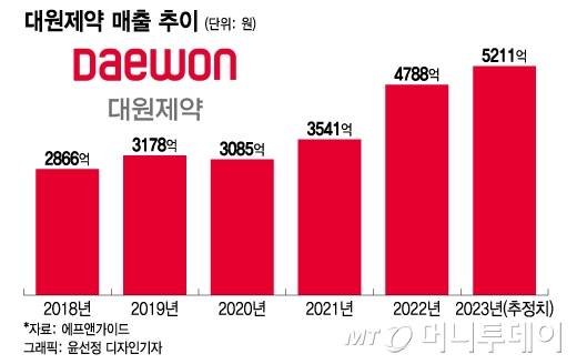 5일 제약업계에 따르면 올해 대원제약은 매출 5000억원대 제약사 반열에 오를 것으로 예상된다. 증권사들도 대원제약의 매출이 5000억원을 넘어설 것으로 보고 있다. 금융정보분석업체 에프앤가이드가 집계한 컨센서스(복수 증권사 전망치 평균) 자료를 보면 대원제약의 매출은 전년보다 8.81% 증가한 5221억원으로 추정된다.