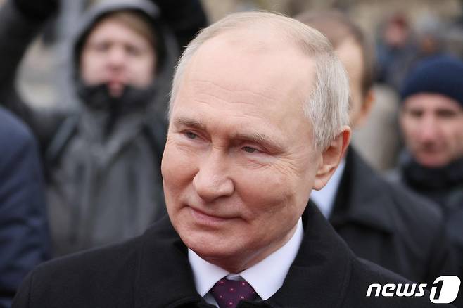 (모스크바 AFP=뉴스1) 우동명 기자 = 블라디미르 푸틴 러시아 대통령이 4일(현지시간) 모스크바 붉은 광장에 있는 구국의 영웅 미닌과 포자르스키 동상의 헌화식에 참석을 하고 있다. 2023.11.5