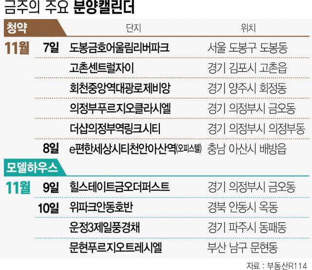 모델하우스는 경기 의정부시 금오동 ‘힐스테이트금오더퍼스트’와 경북 안동시 옥동 ‘위파크안동호반’, 부산 남구 문현동 ‘문현푸르지오트레시엘’ 등 4곳에서 문을 열 예정이다. 힐스테이트금오더퍼스트는 경기 의정부시 금오동 65-3번지 일원에 금오생활권1구역 주택재개발을 통해 들어서는 단지로, 지하 3층~지상 32층, 11개동, 총 832가구 규모로 조성된다. 일반 분양 물량은 408가구다. 의정부경전철 효자역이 도보 10여분 거리에 위치한다. 경기북부 광역행정타운이 인근에 자리하며, 가톨릭대학교 의정부 성모병원과 홈플러스 등 생활인프라도 잘 갖춰져 있다. 천보산, 상록근린공원, 부용천산책로 등이 인접하다.