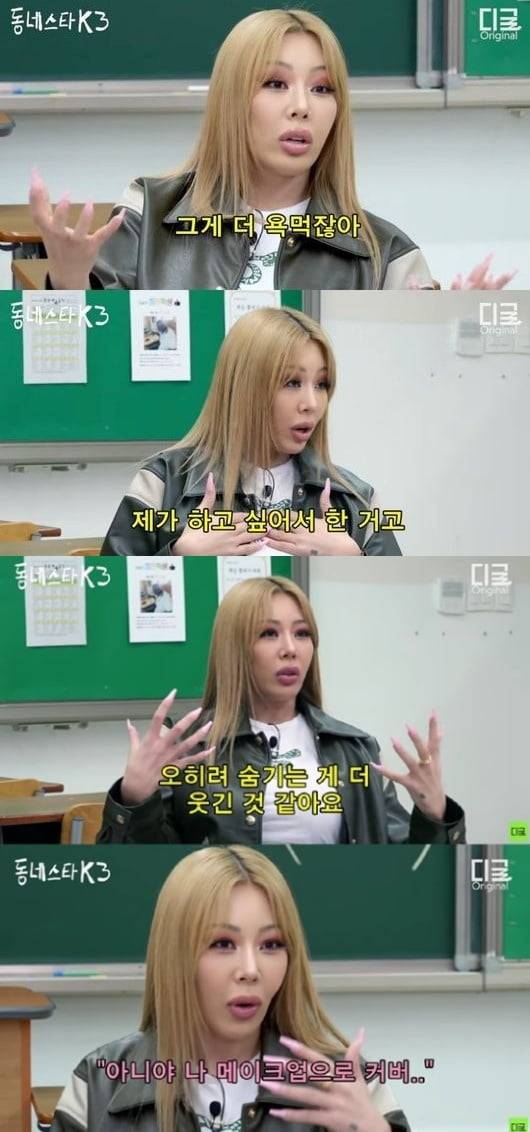 이에 제시는 "오히려 숨기려고 하는 것이 더 웃기다. 당연히 막 '나 이거 했어' 이게 아니다. 내가 성형했어. 근데 방송에 나갔어. 얼굴이 변했어. 근데 '아니다. 메이크업으로 커버한 것이다'라고 하면 나는 오글거린다"라고 밝혔다.