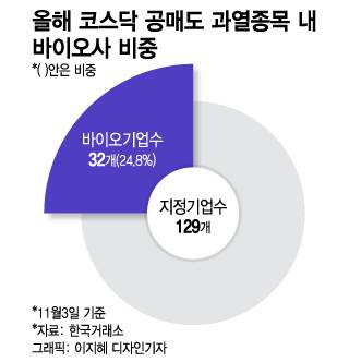 바이오 업종, 큰 변동폭에 공매도 취약…코스닥 공매도 과열종목 4개 중 1개는 바이오