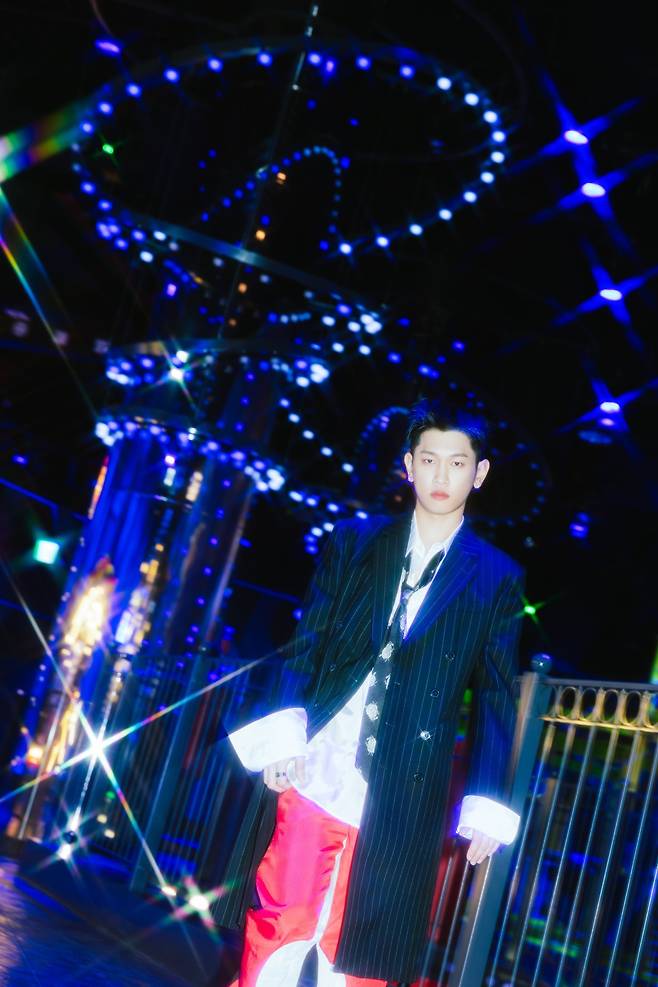 상반된 분위기가 느껴졌다. 크러쉬는 화려한 도시의 불빛을 배경으로 서 있었다. 레드 팬츠와 블랙 재킷을 입고 유니크한 감성을 표현했다.