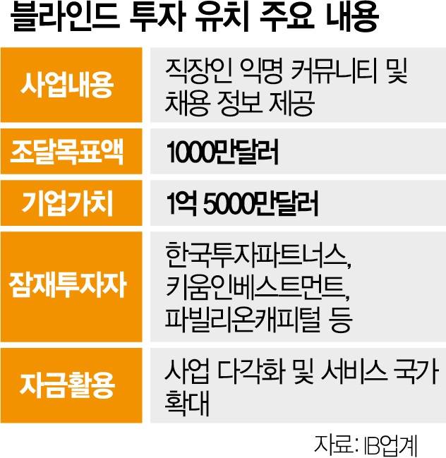 직장인 익명 커뮤니티 앱 ‘블라인드(BLIND)’를 운영 중인 팀블라인드가 국내외에서 자금 조달을 추진한다.