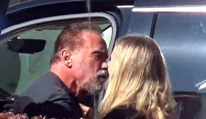 영화 '터미네이터' 시리즈로 유명한 배우 아놀드 슈왈제네거(76)가 의문의 여성과 키스하는 사진이 포착됐다.