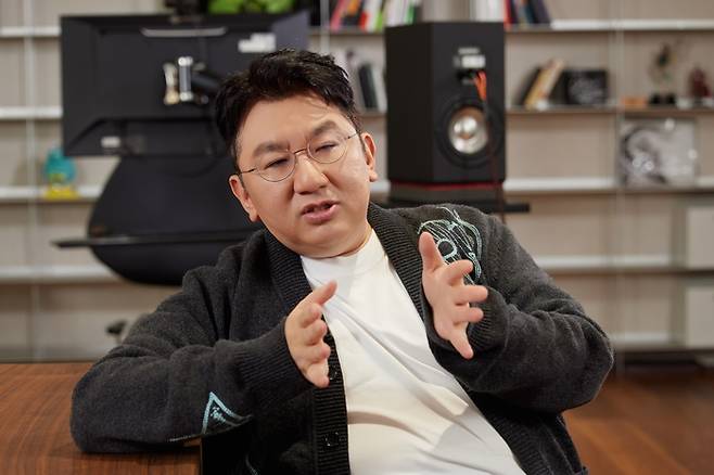 EY한영이 주최하는 ‘EY 최우수기업가상’에서 올해 마스터부문의 영예를 안은 하이브의 방시혁 의장을 용산에 소재한 하이브 본사 5층에서 만났다. 주변에 장식품을 거의 두지 않는 그의 성격 탓에 면적은 그리 크지는 않으나 공간은 넓어 보이는 그의 사무실에서 약 2시간 가까이 진행된 인터뷰는 서울대 축사 얘기부터 시작했다.