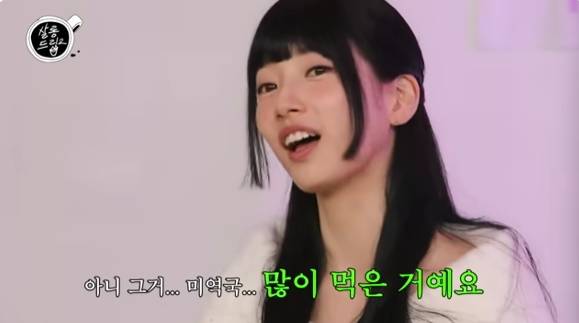 가수 겸 배우 수지가 '이두나!' 촬영 중 배가 나온 에피소드를 들려줬다.