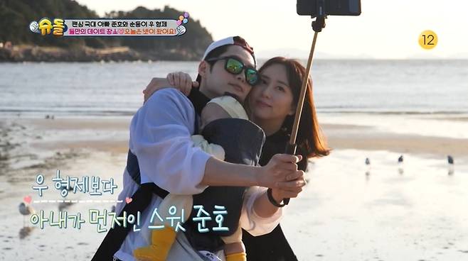 김준호는 아내의 서프라이즈 등장에 반가움을 감추지 못했다. 그렇게 뭉친 가족은 사진을 남기며 바닷가 데이트를 즐겼다.
