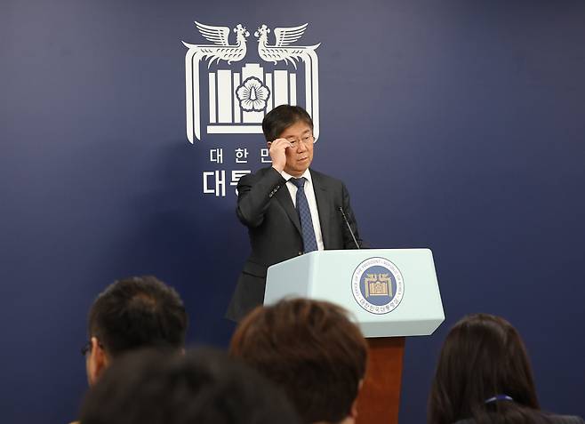 | ▲ 윤석열 대통령이 차기 대법원장 후보자로 조희대 전 대법관을 지명한 8일 서울 용산 대통령실 청사에서 김대기 대통령 비서실장이 인선 배경에 관해 설명하고 있다. 2023.11.8 |