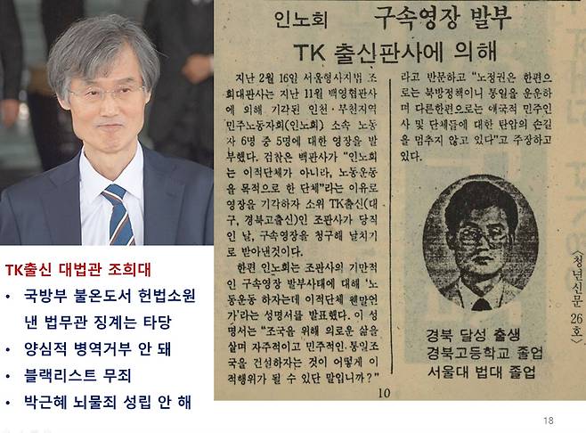 | ▲ '인노회' 사건 등 조희대 대법원장 후보자가 관여했던 주요 사건 |