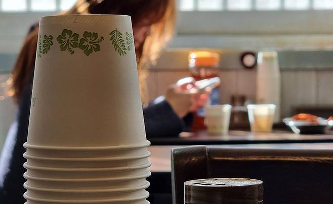 정부가 그제 식당, 카페 등에서 일회용 종이컵을 사용하지 못하도록 한 조치를 철회했다.