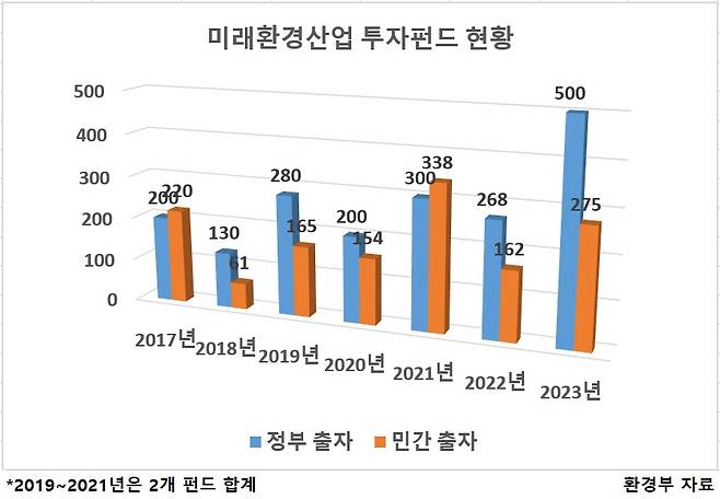 앞서 환경부는 2017년부터 녹색산업 분야 중소·벤처기업 육성을 위한 민관 합동펀드(미래환경산업 투자펀드)에 총 1878억원 규모를 출자해 총 3240억원 규모의 10개 펀드를 운영하고 있다.