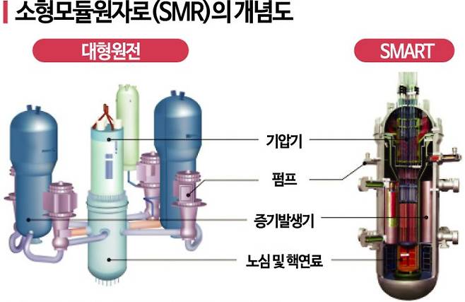 원전은 핵분열 과정에서 발생하는 증기로 터빈을 돌려 전기를 만든다. 소형모듈원전은 원전의 핵심 기기인 원자로, 증기발생기, 냉각재 펌프, 가압기 등을 모듈 형태로 만들어 일체화시킨 것이다. 통상 출력 규모 300MW 이하를 소형 원전으로 분류한다.