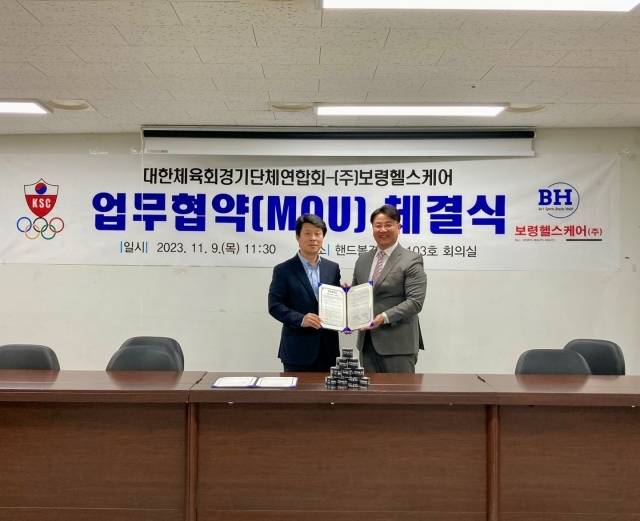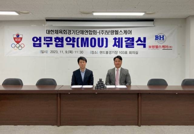 [마이데일리 = 심재희 기자] 69개 대한체육회 가맹단체로 이루어진 대한체육회경기단체연합회(회장 김돈순)가 ㈜보령헬스케어(대표이사 김범수)와 9일 후원협약(MOU)을 체결했다. 국가대표 선수 경기력 향상 및 재활치료 지원을 위해 손을 잡았다. 이번 협약으로 대한체육회경기단체연합회는 ㈜보령헬스케어로부터 BB 테이프 및 각종 후원을 제공 받는다.