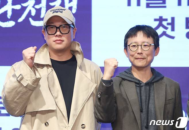 (서울=뉴스1) 권현진 기자 = 김한솔 PD와 전우성 PD(오른쪽)가 9일 오후 서울 구로구 더 세인트에서 진행된 KBS 새 드라마 ‘고려 거란 전쟁’ 제작발표회에서 포즈를 취하고 있다.