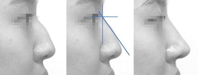 필요한 수술은 코끝을 높여주는 것입니다. 간혹 미간 부위를 함께 살짝 높여주는 것이 필요하기도 합니다.