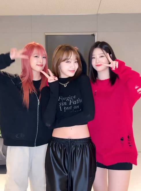 9일 김민주는 "최예나 김채원 구리고 김민주"라는 설명과 함께 르세라핌의 신곡 '퍼펙트 나이트' 챌린지를 위해 뭉친 세 사람의 모습을 담은 영상을 공개했다.