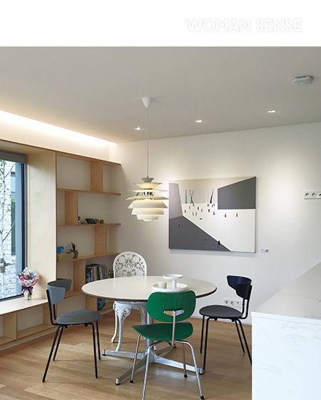주택에 살며 그림에 조예가 깊은 가족들이 편안하게 앉아 식사하고, 이야기를 나누는 공간. 현재는 벽면에 소장한 그림을 걸어두었는데, 변화를 주기 위해 그림 렌털 서비스를 이용한 적도 있다. 인기 있는 넷플릭스 시리즈가 있거나 국가대표 축구 경기가 있는 날엔 3층에서 빔 프로젝트를 활용해 시청한다. -@mm_lina