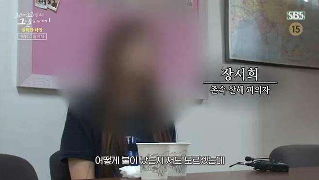 "어떻게 불이 났는지 저도 모르겠는데 그냥 저는 소방서에서 나온 결과가 '담뱃불로 추정됨'이었으니까 '아 그래요?' 그런 줄 알았고. 아빠 조사 결과도 일산경찰서에서 '사고사로 추정됨' 이렇게 나왔으니까 그런 줄 알았고 믿었으니까. 경찰관분들을 그 때는. 서대문 경찰서에서는 제가 던졌대요. 아빠를 번쩍 들어서. 말이 되냐고요. 그렇게 했다는 증거가 있으면 영장도 기각 안 됐을 거고. 수배중인 사람이 영장이 기각되지는 않잖아요."