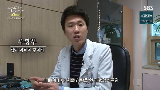 "그때 (아버지) 외출 허락을 안해줬었거든요. 혼자서 이렇게 걸을 수가 없는 상태였던 거 같아요. 그러니까 부축이라든지 아니면 휠체어 정도 타고 겨우 이제 이동하실 수 있는 정도. 이렇게 보내도 되나 싶어서, 사실은 한번 거동해보시라 했거든요. 근데 겨우 부축해서 겨우 발걸음을 때는 정도의…"