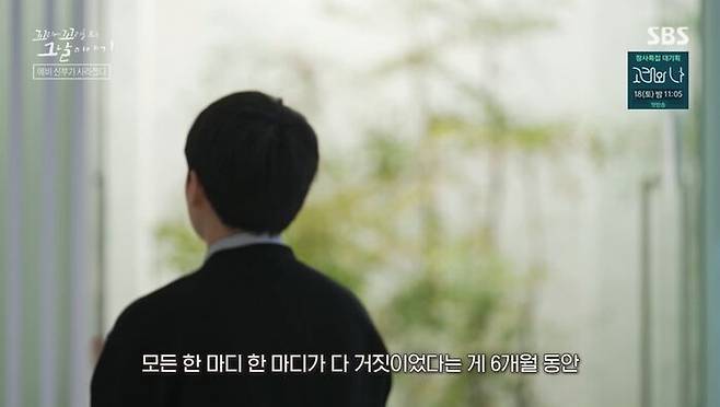 "그러니까 그때 당시에 처음에는 멘붕이었지 뭐. 일단은 사람이 돈도 문제지만 저는 진심으로 그 사람을 대했는데, 모든 한마디 한마디가 다 거짓이었다는 게 6개월 동안. 만나거나 커피 마시거나 밥 먹었다든가 이런 것들이 하나도 진심이 없었다는 생각이 들면 그게 너무 진짜… 이렇게 사람이 바보가 될 수 있구나."