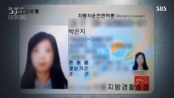 이 신분증 속 사진의 얼굴은 장서희. 그런데 이름은 박은지야. 은지 씨 이름으로, 운전면허증까지 발급받은 거야. 한마디로 위조 신분증이야. 장서희는 그야말로 완벽한 타인으로 살아가고 있었어. 그러면 대체 왜, 이러고 산 걸까? 장서희에게 진짜 숨기고 싶었던 비밀이 있었던 걸까?