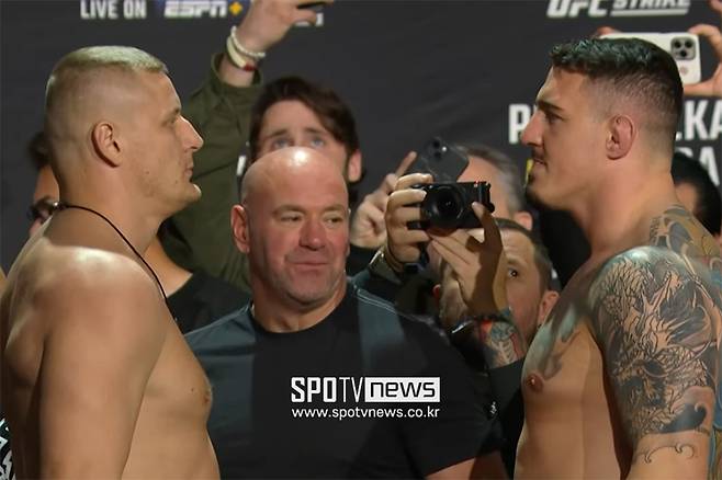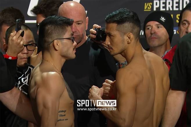 강경호와 카스타네다는 매디슨스퀘어가든에서 열린 공개 계체에서 서로를 바라보며 파이팅 포즈를 취한 뒤, 악수를 나누고 명승부를 약속했다.