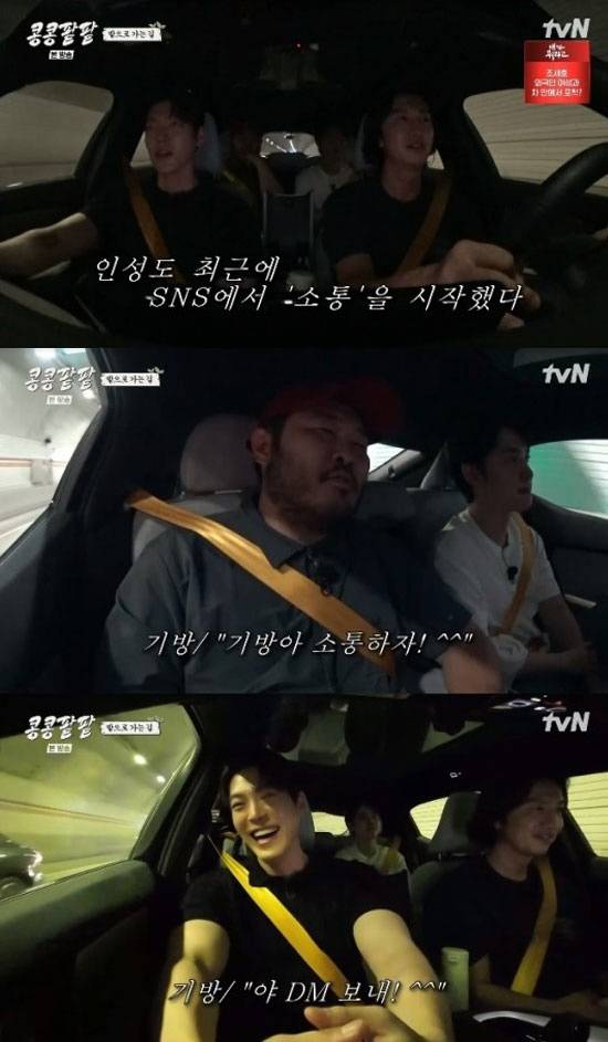 멤버들은 "안 한다고 막 그랬지 않냐", "'야 내가 무슨 소셜 계정이야' 이래놓고"라던 조인성이 SNS를 시작했다고 폭로했고, 김기방은 "(조)인성이랑 통화하면 '기방아 소통하자. 야 DM 보내'라고 하고 끊는다"라고 조인성의 변화도 전해 웃음을 자아냈다.