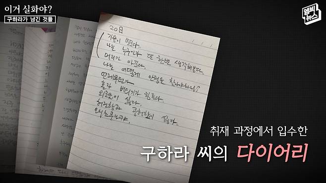 엠빅뉴스는 취재 과정에서 구하라 씨가 생전에 작성한 다이어리의 일부를 입수할 수 있었습니다.