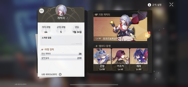 투어 패스 내 설정 가능한 지원 캐릭터 수량을 확장할 예정이다. 또한 별바다 동행에 표시되는 캐릭터 수도 증가된다. 이외 더 많은 개척자 정보가 투어 패스에 표시된다.
