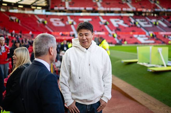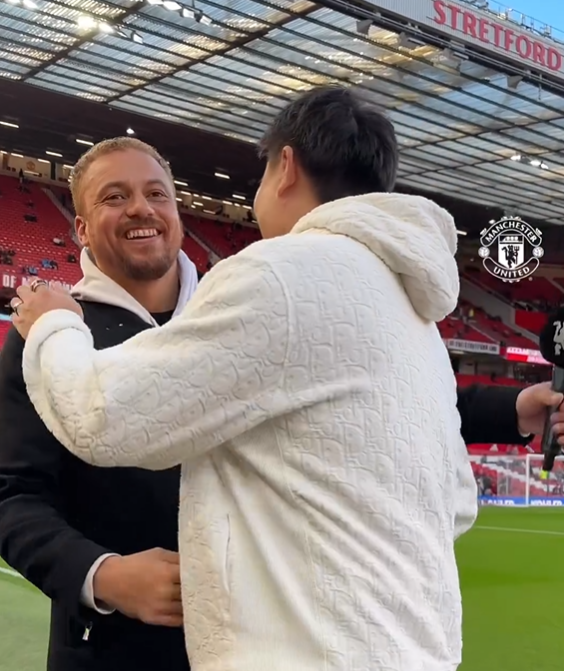 맨유 구단은 "다시 봐서 기쁘다, 동"이라고 인사한 뒤 중국 오성홍기를 박았다. 동팡저우는 그라운드까지 내려가 맨유 관계자들과 인사하더니 이날 방송 해설을 위해 준비하고 있던 과거 맨유 수비수 웨슬리 브라운과도 만나 포옹하고 악수했다.