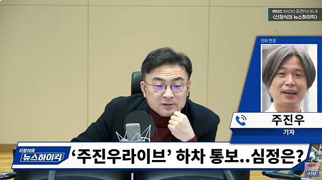 ☏ 진행자 > 당사자가 돼버린 주진우 진행자, 주진우 전 진행자네요. 벌써. 직접 연결해서 이야기 들어보겠습니다. 주 기자님 나와 계신가요?