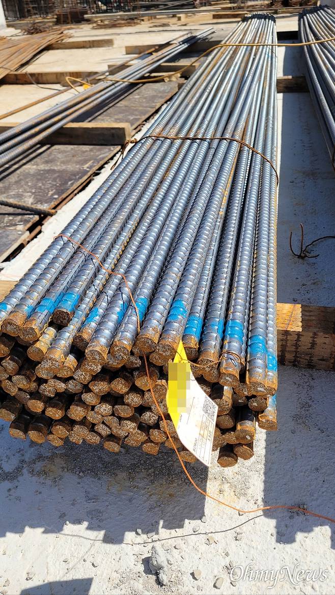 | ▲ 오후 1~2시가 되면 철근이 햇빛에 열을 받아 뜨겁게 달궈졌다. 철근 다발은 무게가 수백, 수천 kg이 나가기 때문에 상하차 작업 중 노동자가 다발에 깔려 큰 사고가 나기도 한다. |