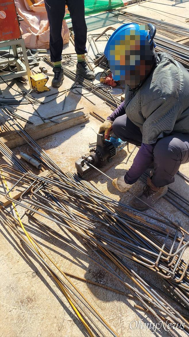 바닥에 철근을 깔 땐 철근 위를 밟으며 작업을 해야 했는데, 새벽 이슬을 머금은 오전엔 더 미끄러웠다. 중심을 잡기도 어려운 철근 위에서 노동자들은 무겁고 긴 철근을 아무렇지도 않게 어깨에 이고 다녔고, 손이 닿지 않는 하부 철근을 결속하기 위해 10미터를 넘게 기어 다녔다. 고개를 박고 계속 철근을 엮다 보면 땀이 안경에 줄줄 흘러 맺힌 소금기 때문에 앞도 잘 안 보였다. 목이 아파 고개를 젖혔다간 머리가 핑 돌아 철근 사이에 발이 빠지기도 했다. 바닥에 콘크리트도 깔리기 전에 이뤄지는 공정이라 아래층의 '동바리'라는 임시 지지대들이 떠받치는 거푸집 위에서 일을 했는데, 아래층에서 다른 작업이라도 할 때면 동바리 개수가 눈에 띄게 줄어 불안했다.