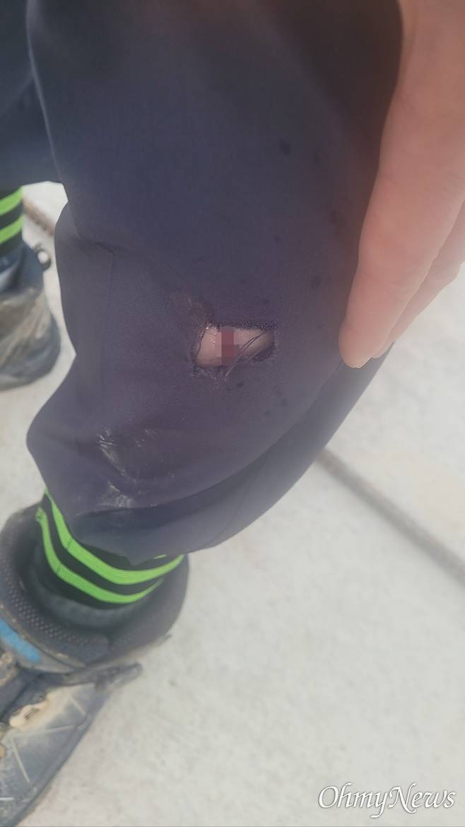 "옷 찢어졌음 살갗도 패인 겨."