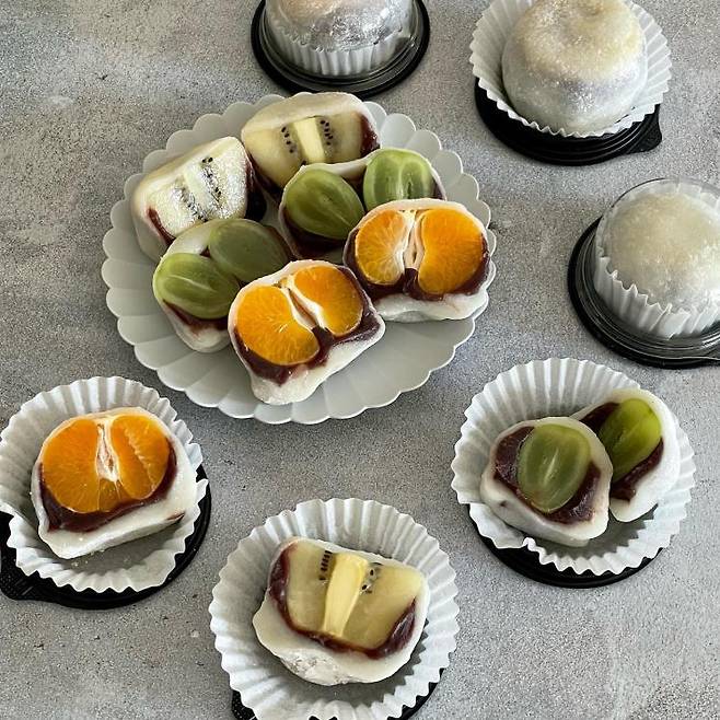 떡과 팥은 거들 뿐. 과육이 ‘팡팡’ 터지는 통 과일이 들어가, 풍미를 더욱 극대화하는 블루밍의 찹쌀떡을 소개한다. 제철 과일을 활용하여, 현재는 귤과 샤인머스캣, 골드키위 3가지를 맛볼 수 있다고. 가장 인기가 많은 딸기 찹쌀떡의 경우 올해 연말에 선보일 예정이다. 떡으로 포만감을 채우는 동시, 상큼한 과일로 비타민까지 충전 가능하니 일석이조!