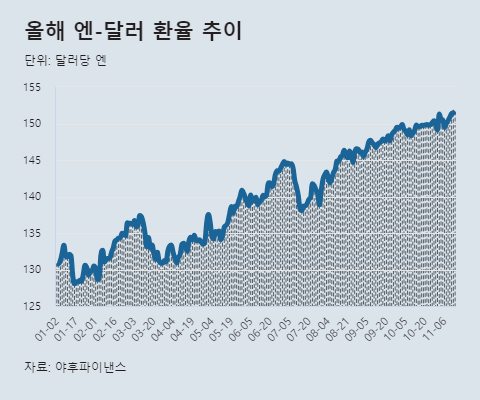 엔-달러 환율 152엔 육박, 연중 최고치… “韓 수출경쟁력 약화 우려”
