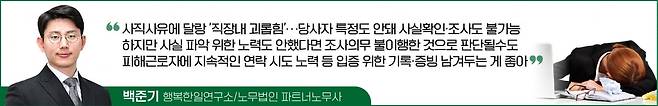 인사팀에서 직원의 입·퇴사를 관리하던 A는 최근 한 직원으로부터 사직서를 제출받았습니다. 퇴직 처리를 위해 사직서를 살펴보던 A는 사직 사유란에 달랑 '직장 내 괴롭힘'이라고 적혀 있는 것을 보고 고민에 빠졌습니다. 작년 연말에 받은 사내 교육에서, 신고가 없더라도 직장 내 괴롭힘 발생 사실을 회사가 인지한 경우라면 당사자 등을 대상으로 객관적인 조사를 실시해야 한다고 들었던 것이 떠올랐기 때문입니다.