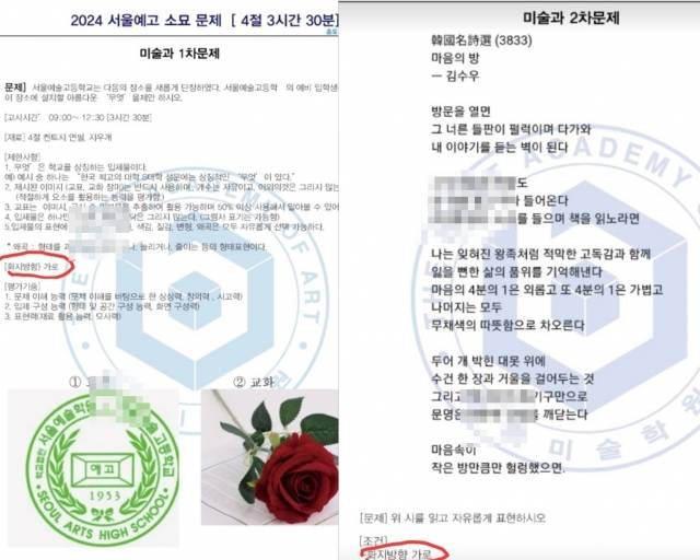 [단독] ‘가로로 그리시오’인데 세로로 그려 합격… 서울예고 입시 논란