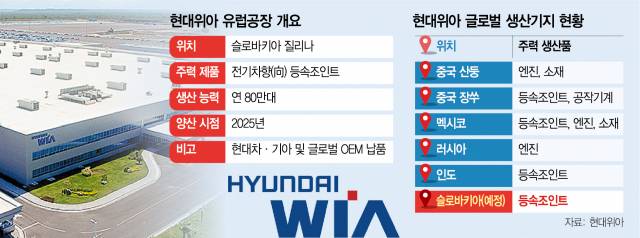 16일 자동차 업계에 따르면 현대위아는 유럽 슬로바키아에 등속조인트 생산 공장을 신설하기로 했다. 중국 산둥과 장쑤, 멕시코, 러시아, 인도에 이은 여섯 번째 해외 공장이다. 신설 공장은 2025년 양산을 목표로 연 80만 대의 생산 능력을 갖출 계획이다.