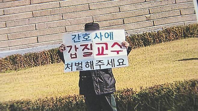 "작년 12월쯤, B 교수는 같이 일하는 간호사한테 볼 때마다 '자기가 싫어하는 어떤 사람을 떠올리게 한다'면서 인신 공격을 했어요."