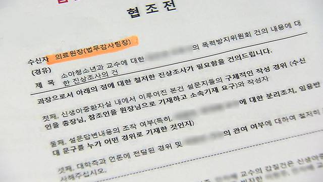 여기에 더해 병원 측이 아직 임상교수인 A 교수를 올해 전임 교수로 채용할 수 있다고 전하자, 소아과 교수들은 병원장에게 "A 교수와 동료 교수가 될 수 없다"며 반대의견을 피력한 것으로 전해졌습니다.