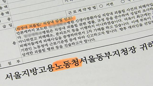 ■ '직장 내 괴롭힘' 신고한 간호사 감사 착수