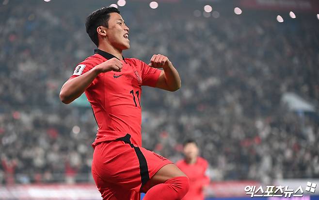 조규성이 페널티지역 오른쪽 외곽에서 크로스를 올렸고 이를 반대편에서 황희찬이 수비라인 뒤에 있다가 점프하며 방아를 찧듯이 헤더슛을 시도해 골망을 출렁였다.