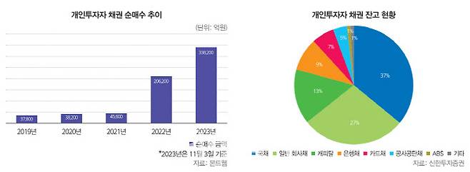 개인 33.8조 순매수…전년比 63%↑ 고금리 장기화되면서 채권 저점 매수 매력 높아져 “개인투자자 자금 유입 항상 휘발성인 게 문제”