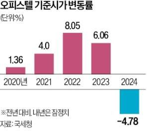 국세청이 17일 공개한 2024년 기준시가 안에 따르면 전국의 오피스텔은 전년 대비 평균 4.78%, 상업용 건물은 0.96% 하락했다.