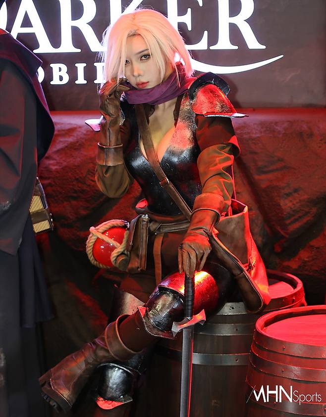 이날 크래프톤 부스 '다크앤타커 모바일' 코스프레를 한 모델 송주아가 포즈를 취하고 있다.